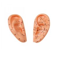 Modell menschlicher Ohren (rechts und links) aus weichem Kunststoff im Maßstab 1:1 mit Akupunkturpunkten. Abmessungen: B4,5 x H8 cm.